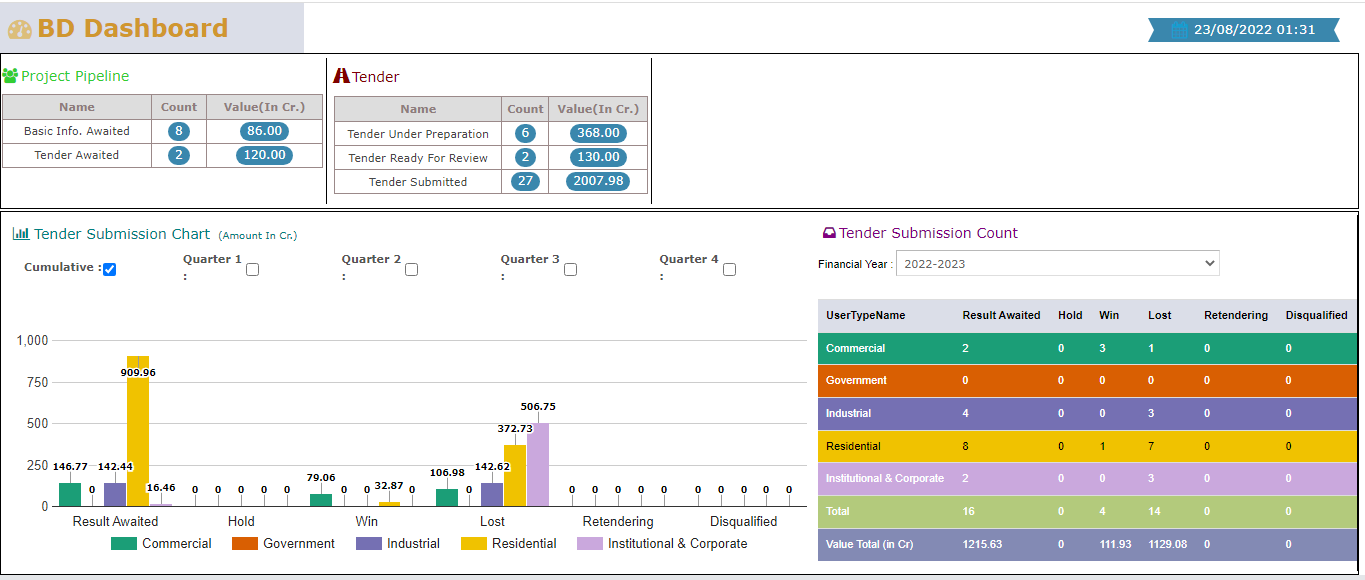 Project-wise Profitability, Progress and Resource usage