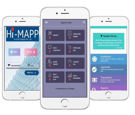 Hi-Mapp is hi-tech's productivity app helping teams to deliver on time. Hi-Mapp provides users the ease of mobility. Hi-Mapp groups together most essential functionalities of ERP and HRMS to improve productivity.